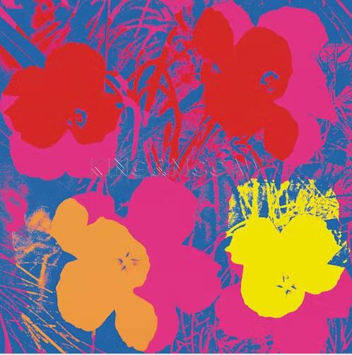 ANDY WARHOL – FLOWERS C.1964 ( RED, YELLOW, ORANGE ON BLUE)